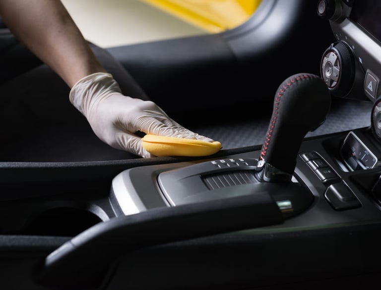 Nettoyage + désinfection vapeur des surfaces, plastiques, volants, écran, console centrale...